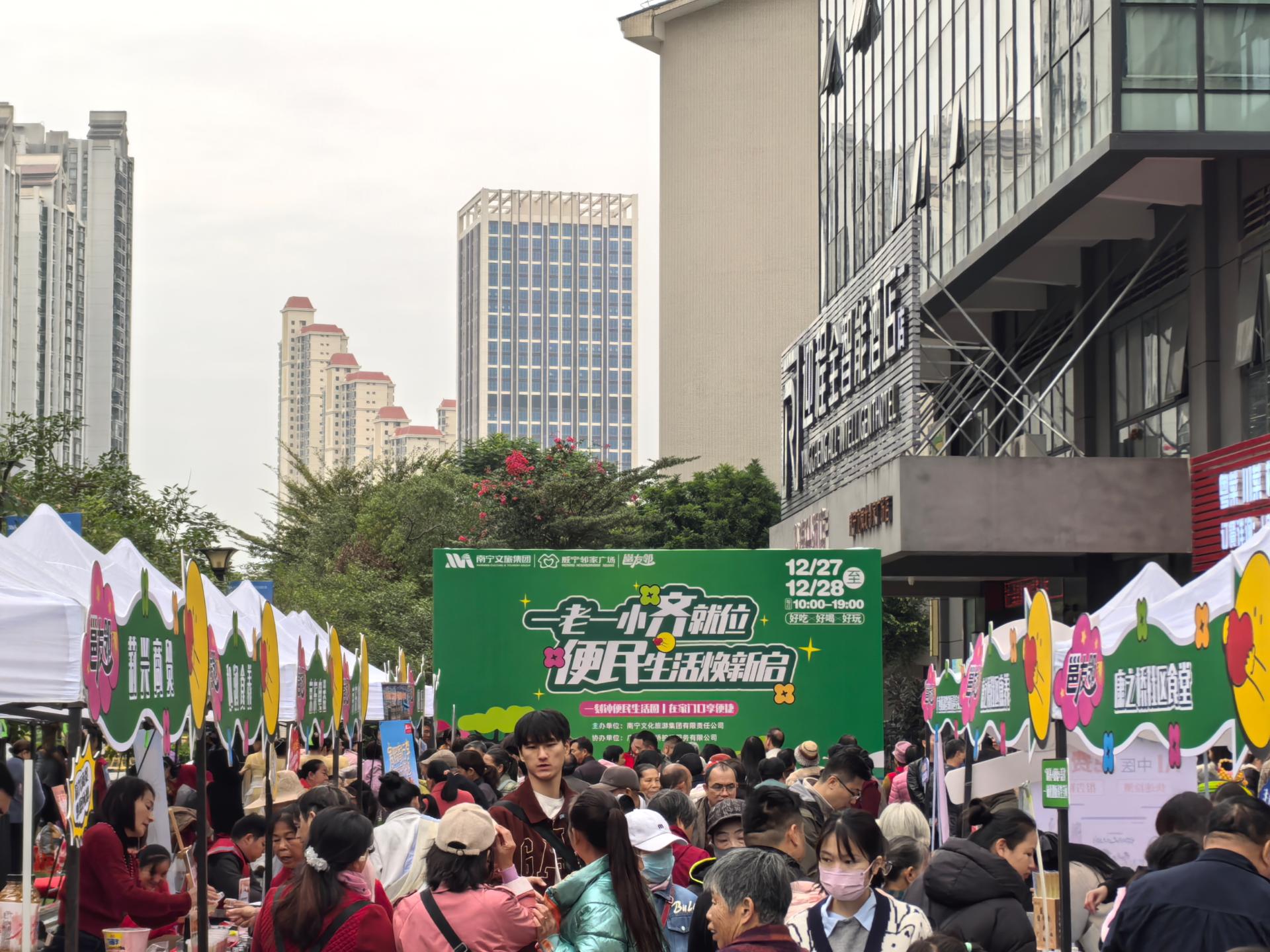 冬日邻里暖,市集意犹未尽。12月27日至28日,由jc710公海赌船-欢迎来到公赌船 所属企业南宁文旅集团主办、广西康之桥护理服务有限公司协办的“一老一小齐就位,便民生活焕新启”jc710公海赌船·龙岗北邻家广场便民市集顺利举办。为期两天的活动人气持续高涨,每日千余名居民到场打卡,辐射周边十多个居民小区。项目商家和26家参展商各展所长,便民惠民福利轮番助兴,用实打实的热闹氛围,印证了“一刻钟便民生活圈”的强大吸引力。